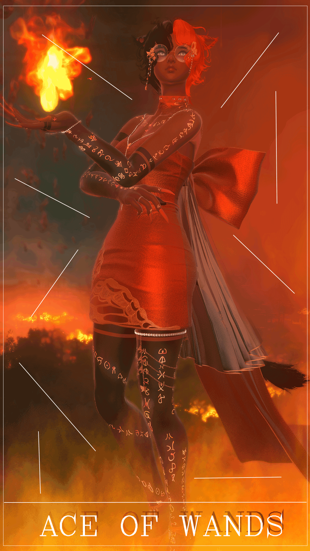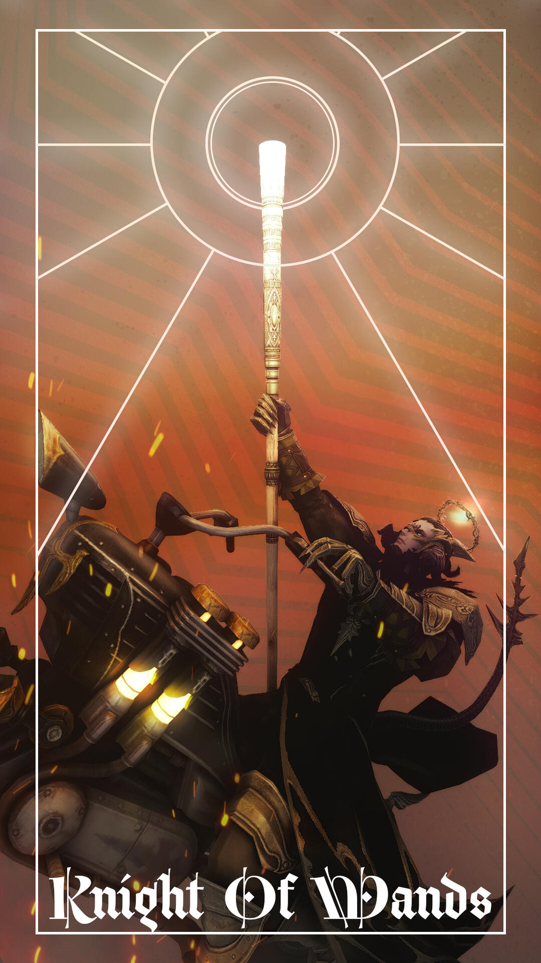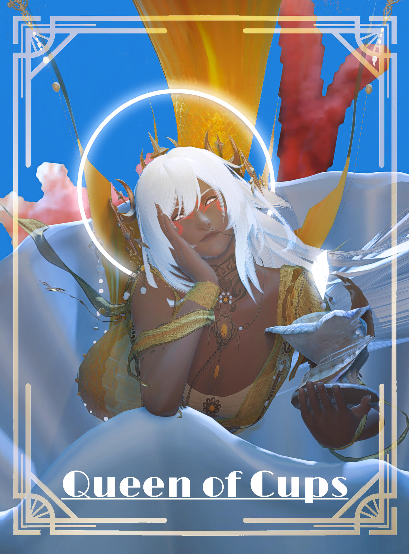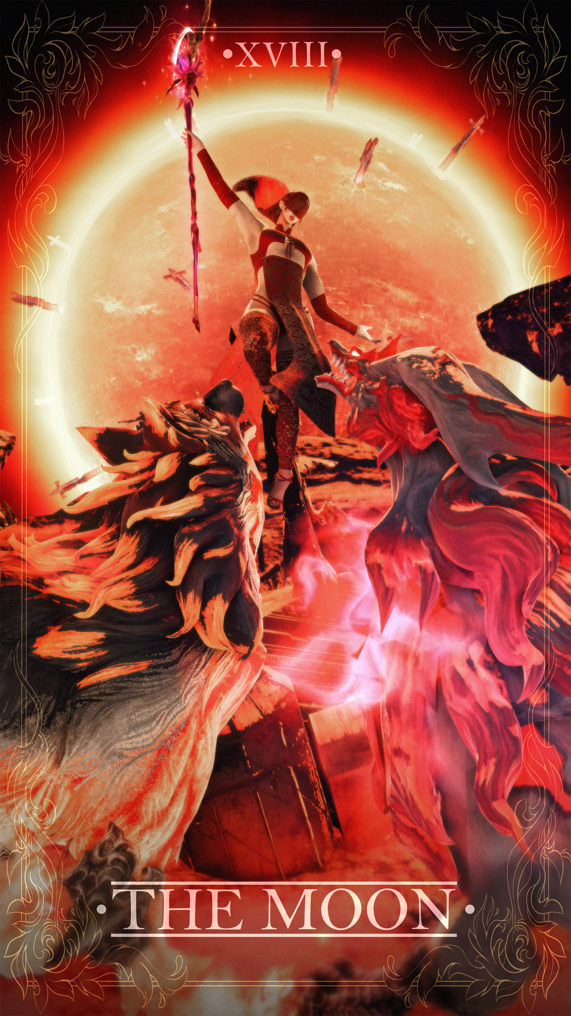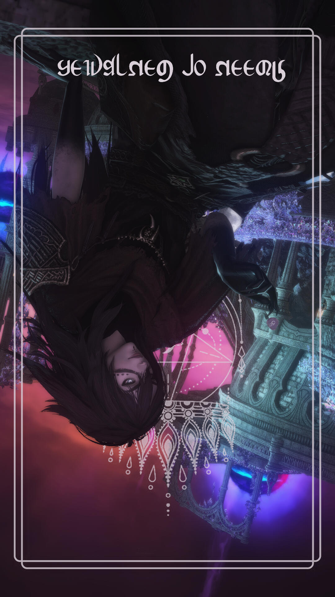 The choice for the card was due to its themes of love and success- as of 6.5- Sappho is happy with a loving girlfriend in Zero and is recovering from Endwalker and all that came before. Her path is looking up, and even reversed has good fortune, and the card also represents femininity, and Sappho is Hyper-Feminine so that matched well.As for the card itself, the elpis blooms and planet behind her representing her triumph over all that was ENW and before. She holds her red mage weapon proudly, and with the focus attached to make a staff as reference to the posing of a lot of other Empress tarot cards. She also has the azem symbol behind her head- its supposed to mimic the holy halos in older christian art while also being related to fourteen and her as a shard of Azem. But the underlying reason to all of this was I just thought it looked really cool.