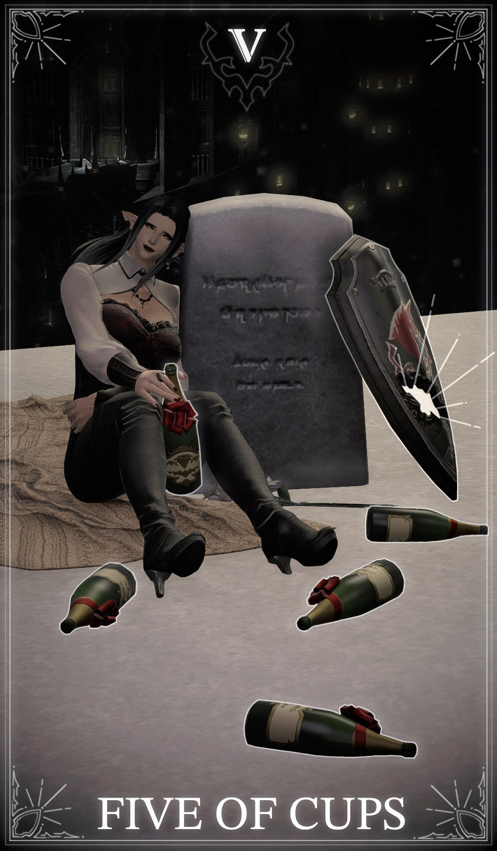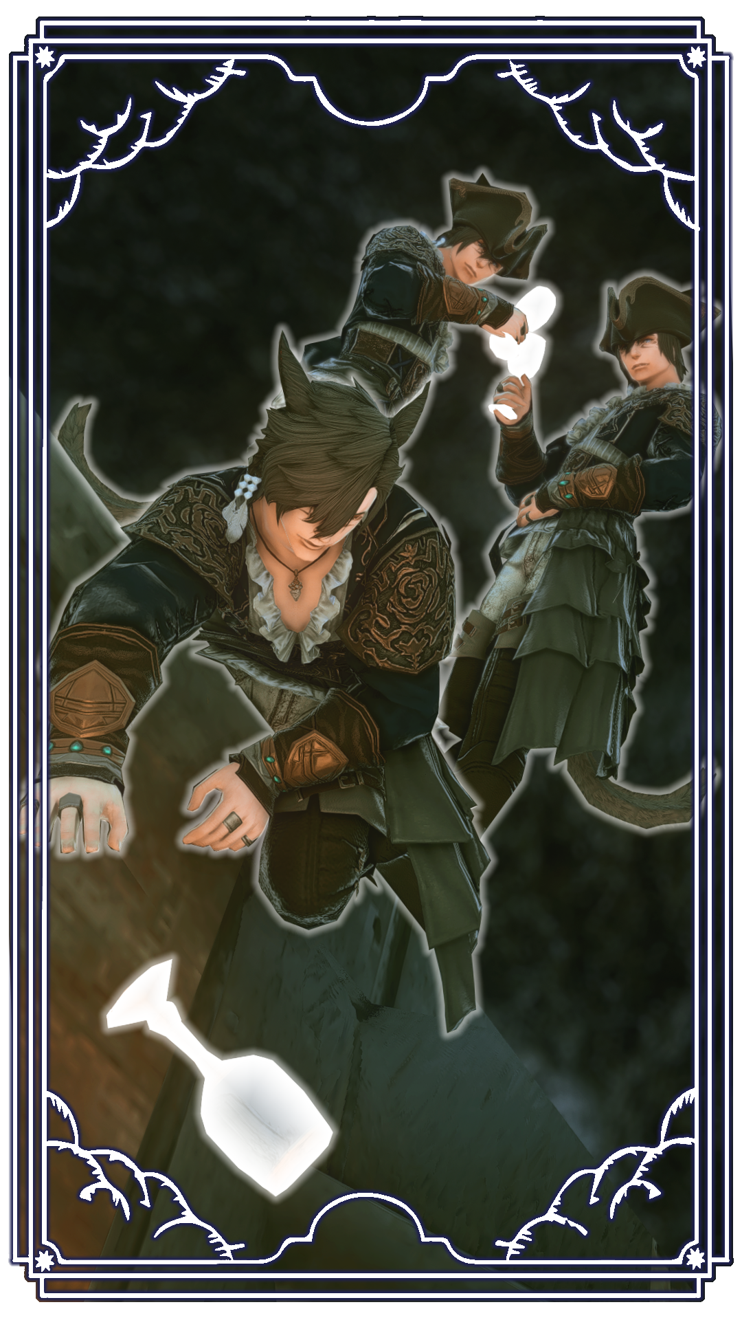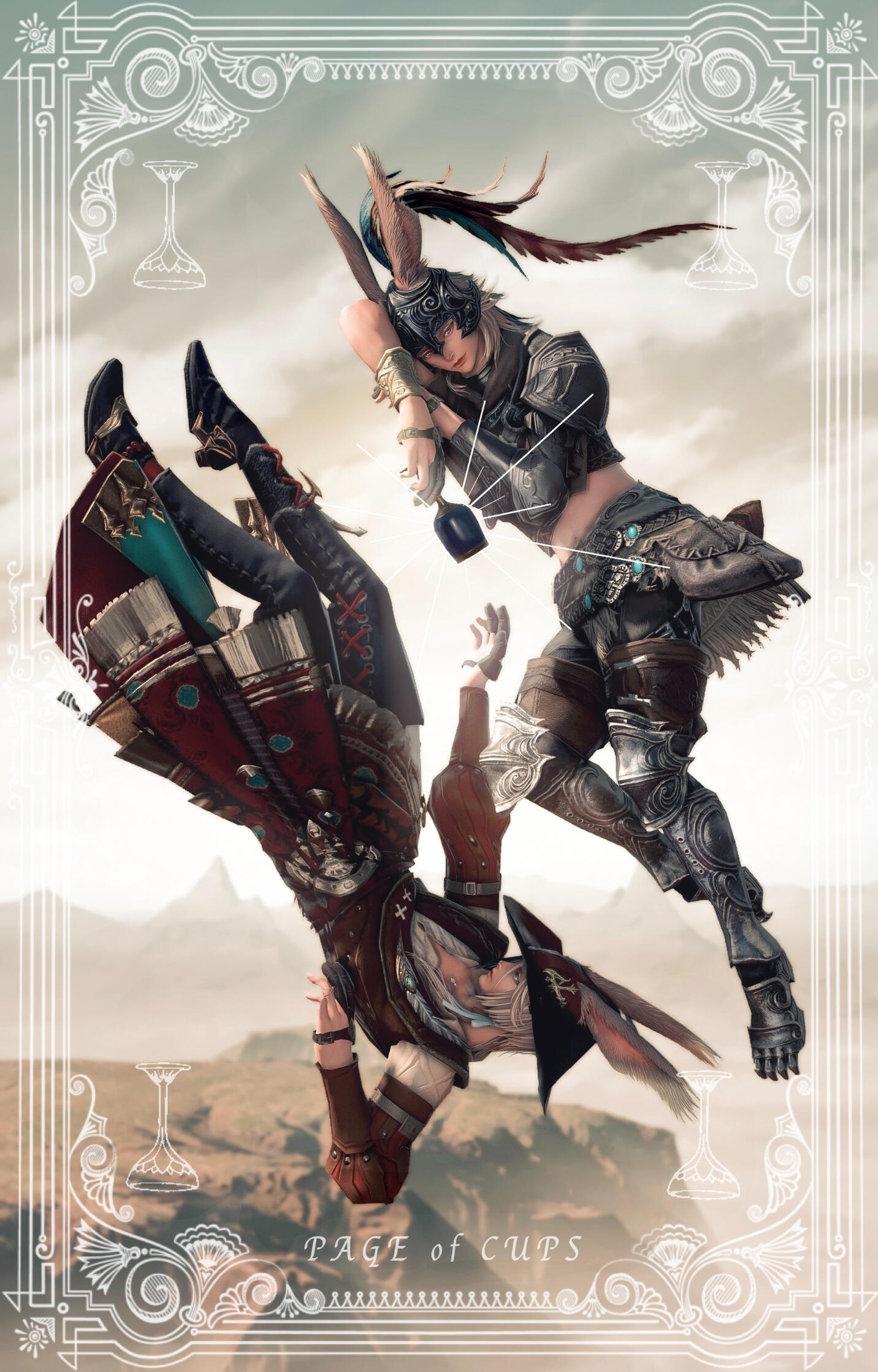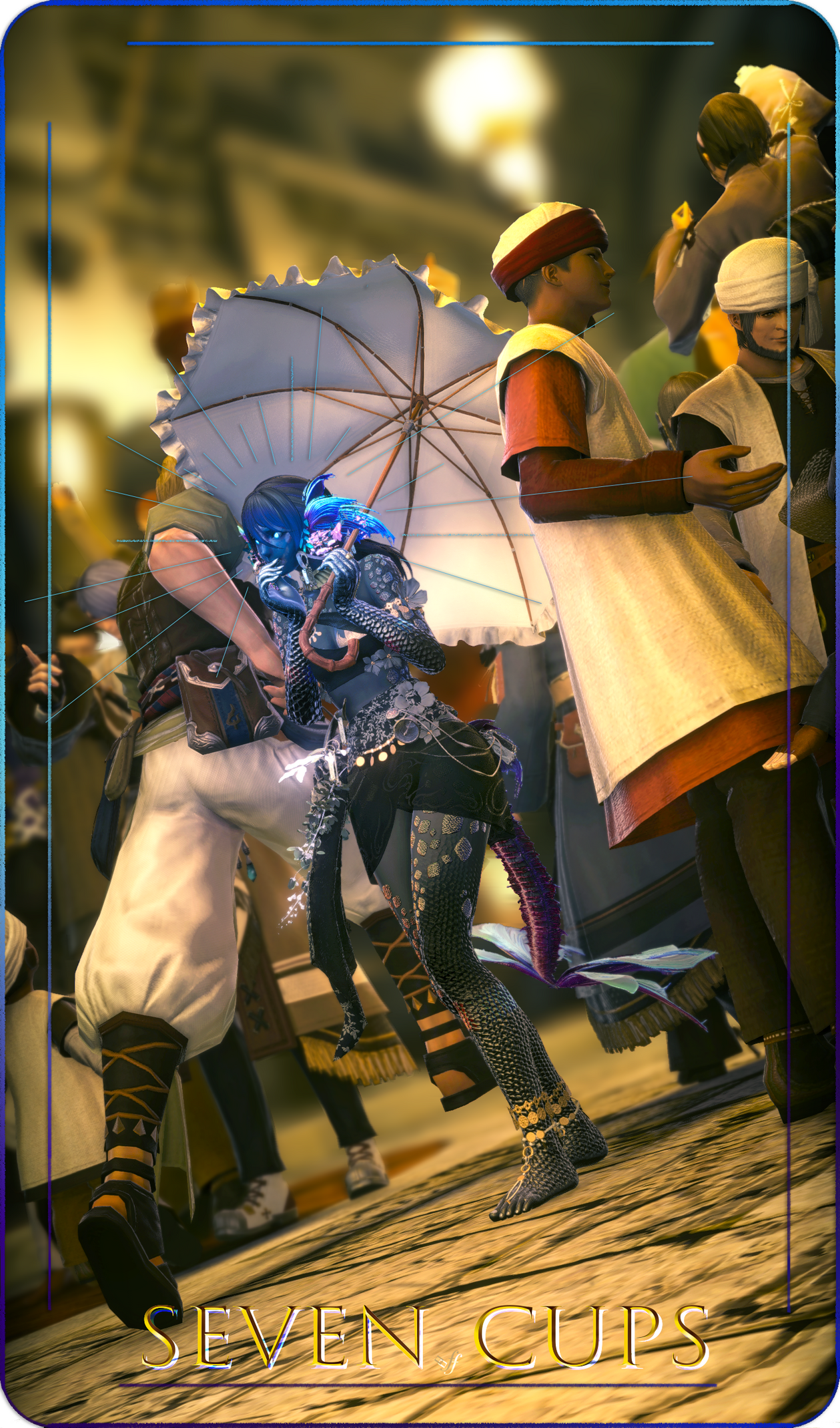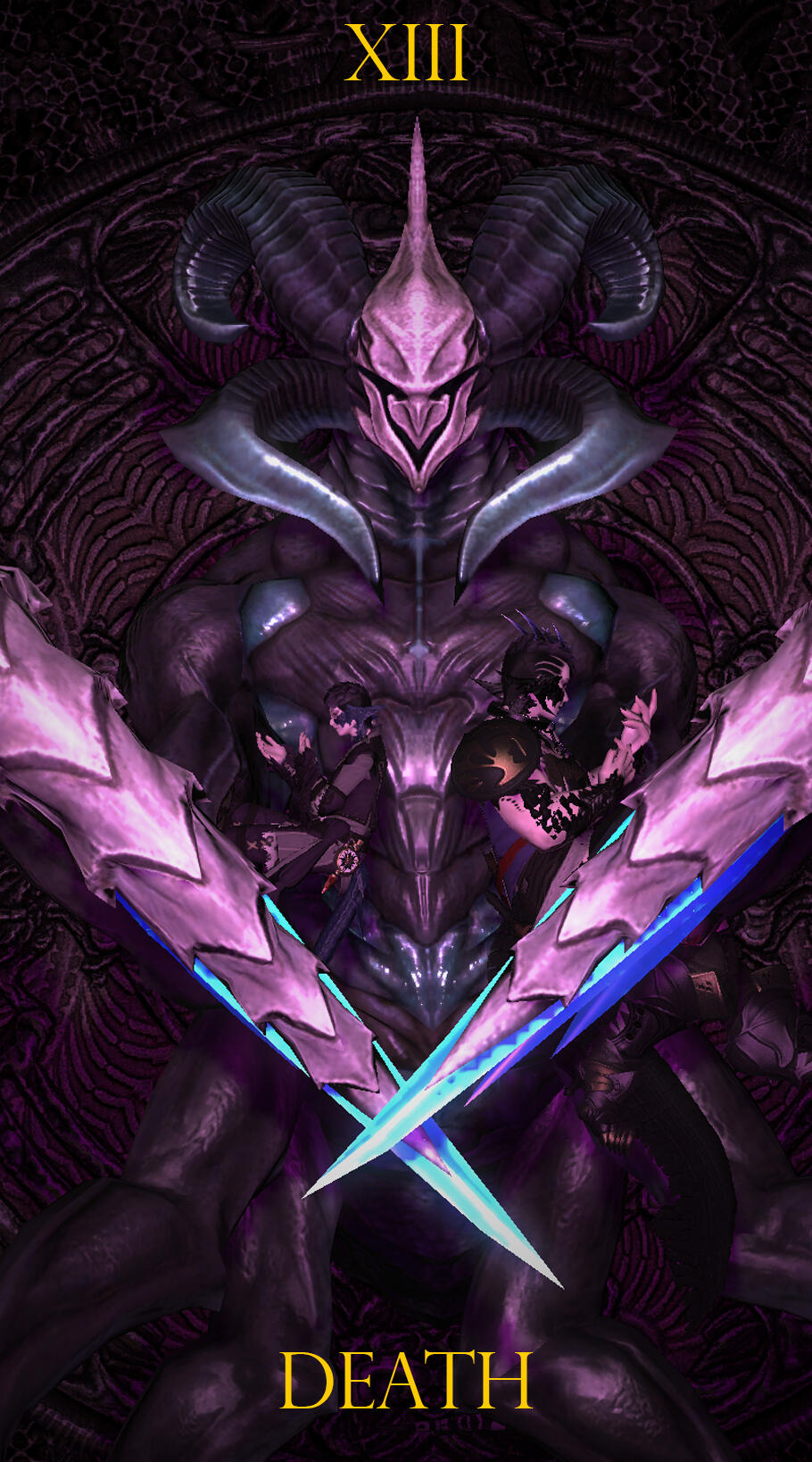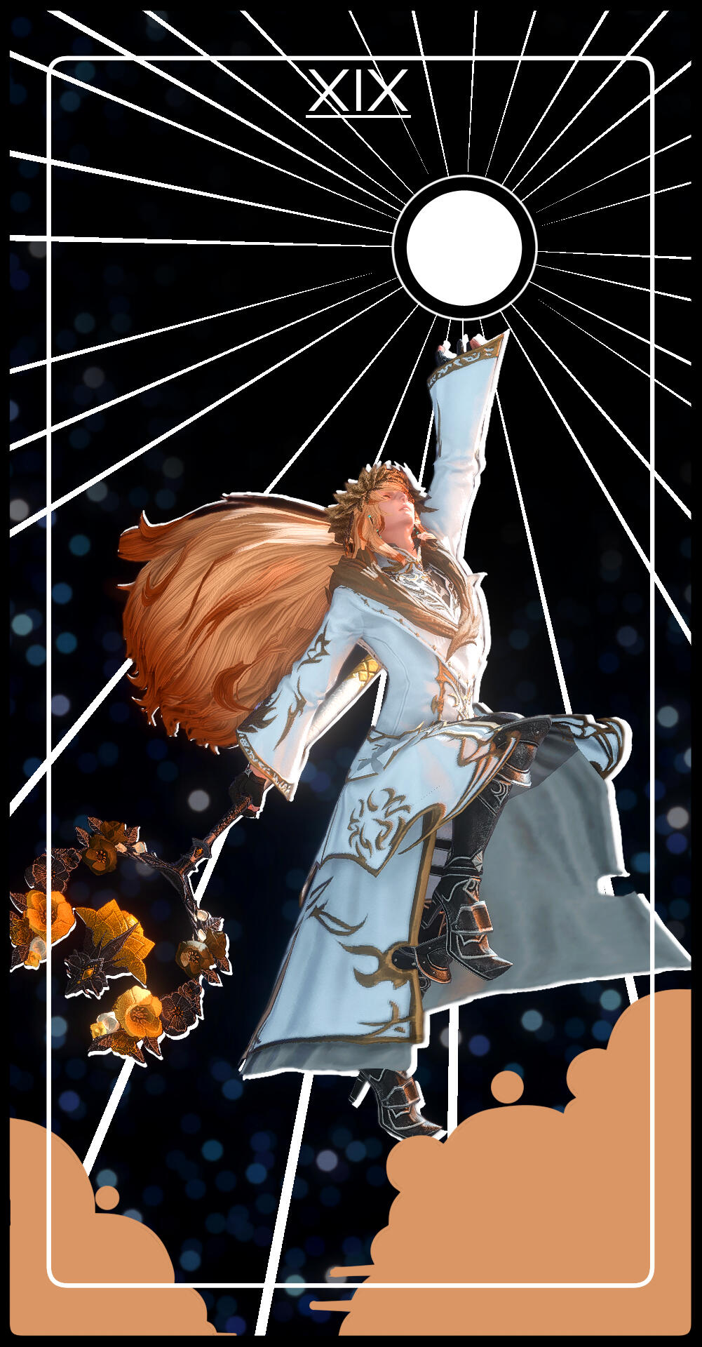 The choice for the card was due to its themes of love and success- as of 6.5- Sappho is happy with a loving girlfriend in Zero and is recovering from Endwalker and all that came before. Her path is looking up, and even reversed has good fortune, and the card also represents femininity, and Sappho is Hyper-Feminine so that matched well.As for the card itself, the elpis blooms and planet behind her representing her triumph over all that was ENW and before. She holds her red mage weapon proudly, and with the focus attached to make a staff as reference to the posing of a lot of other Empress tarot cards. She also has the azem symbol behind her head- its supposed to mimic the holy halos in older christian art while also being related to fourteen and her as a shard of Azem. But the underlying reason to all of this was I just thought it looked really cool.