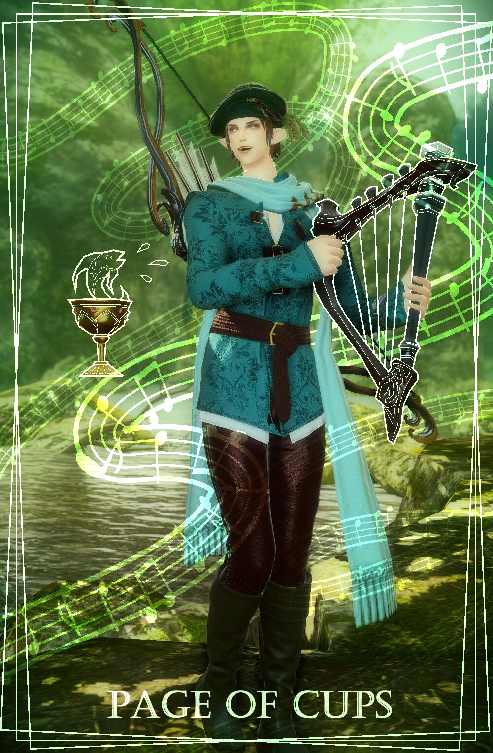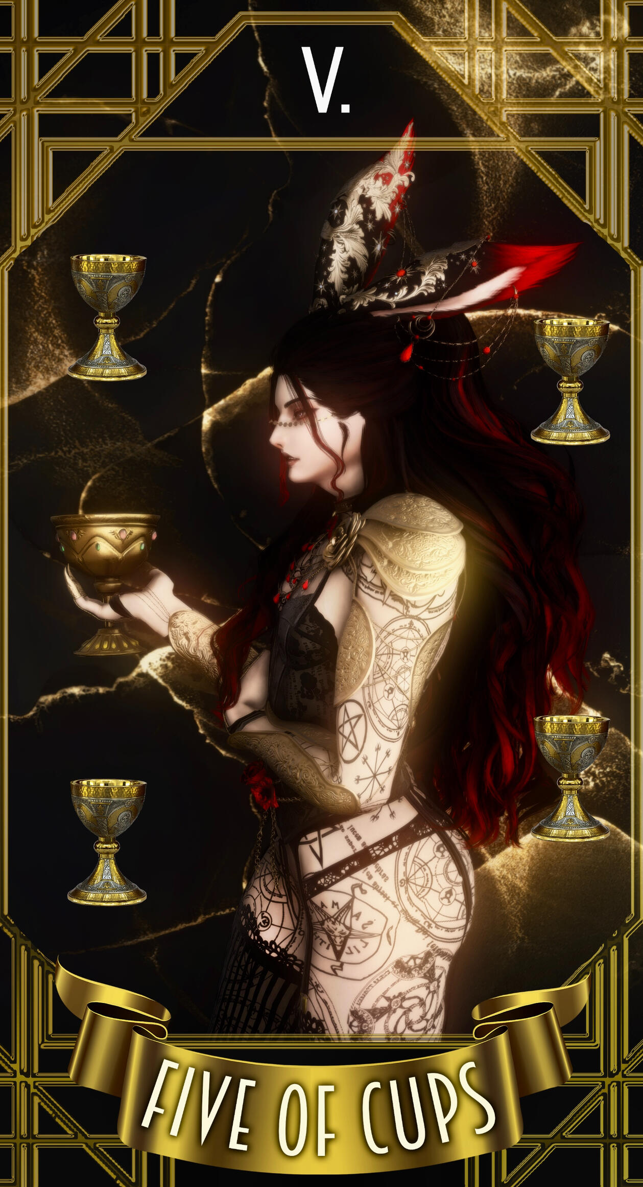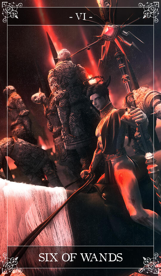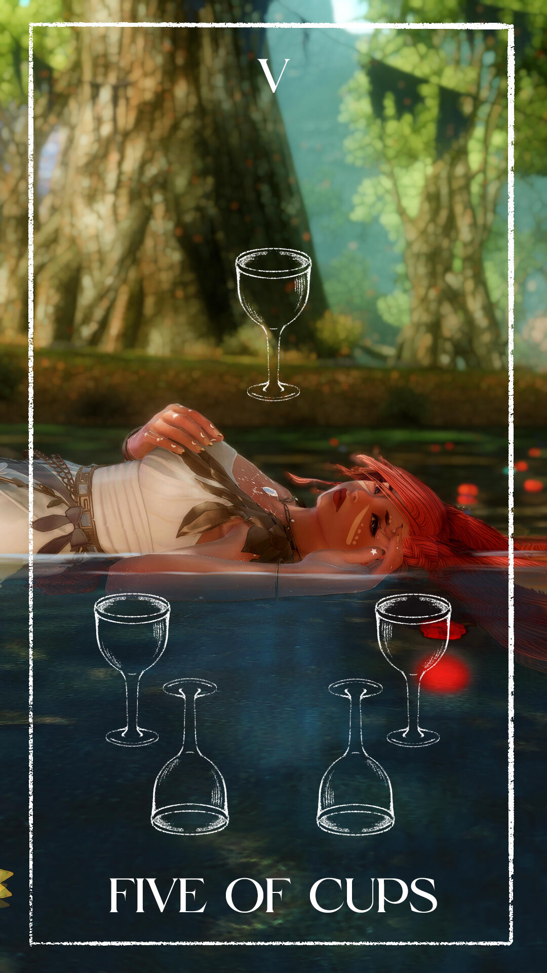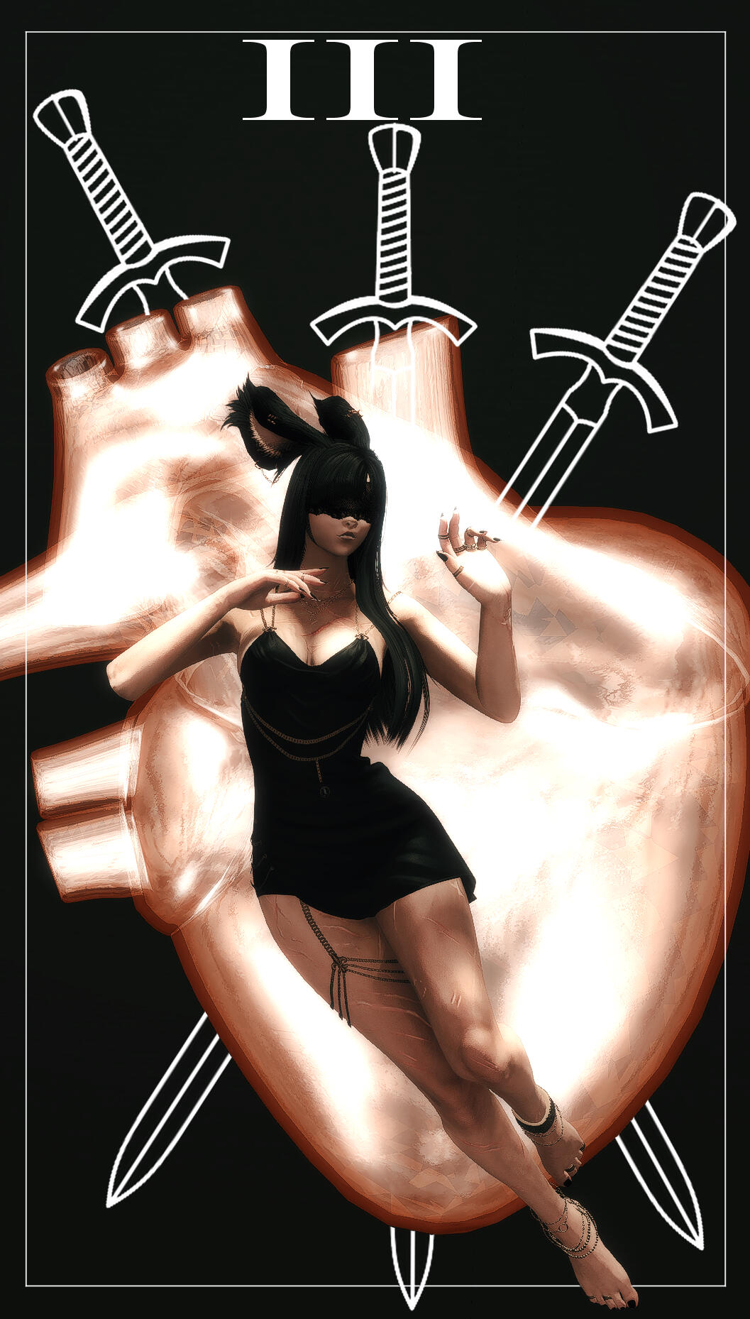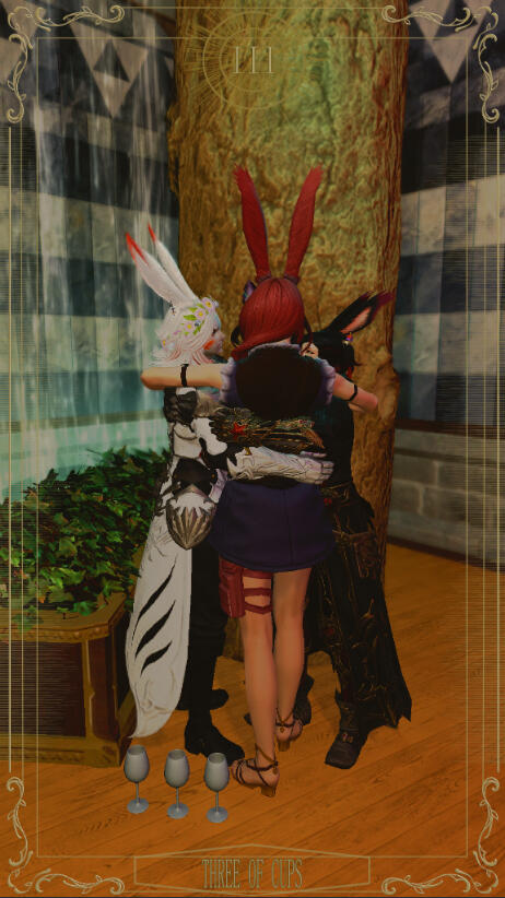 The choice for the card was due to its themes of love and success- as of 6.5- Sappho is happy with a loving girlfriend in Zero and is recovering from Endwalker and all that came before. Her path is looking up, and even reversed has good fortune, and the card also represents femininity, and Sappho is Hyper-Feminine so that matched well.As for the card itself, the elpis blooms and planet behind her representing her triumph over all that was ENW and before. She holds her red mage weapon proudly, and with the focus attached to make a staff as reference to the posing of a lot of other Empress tarot cards. She also has the azem symbol behind her head- its supposed to mimic the holy halos in older christian art while also being related to fourteen and her as a shard of Azem. But the underlying reason to all of this was I just thought it looked really cool.