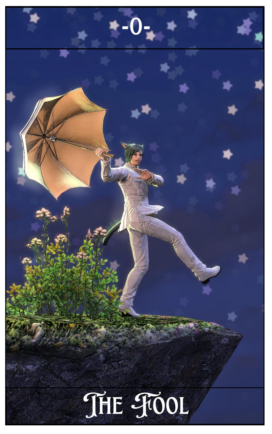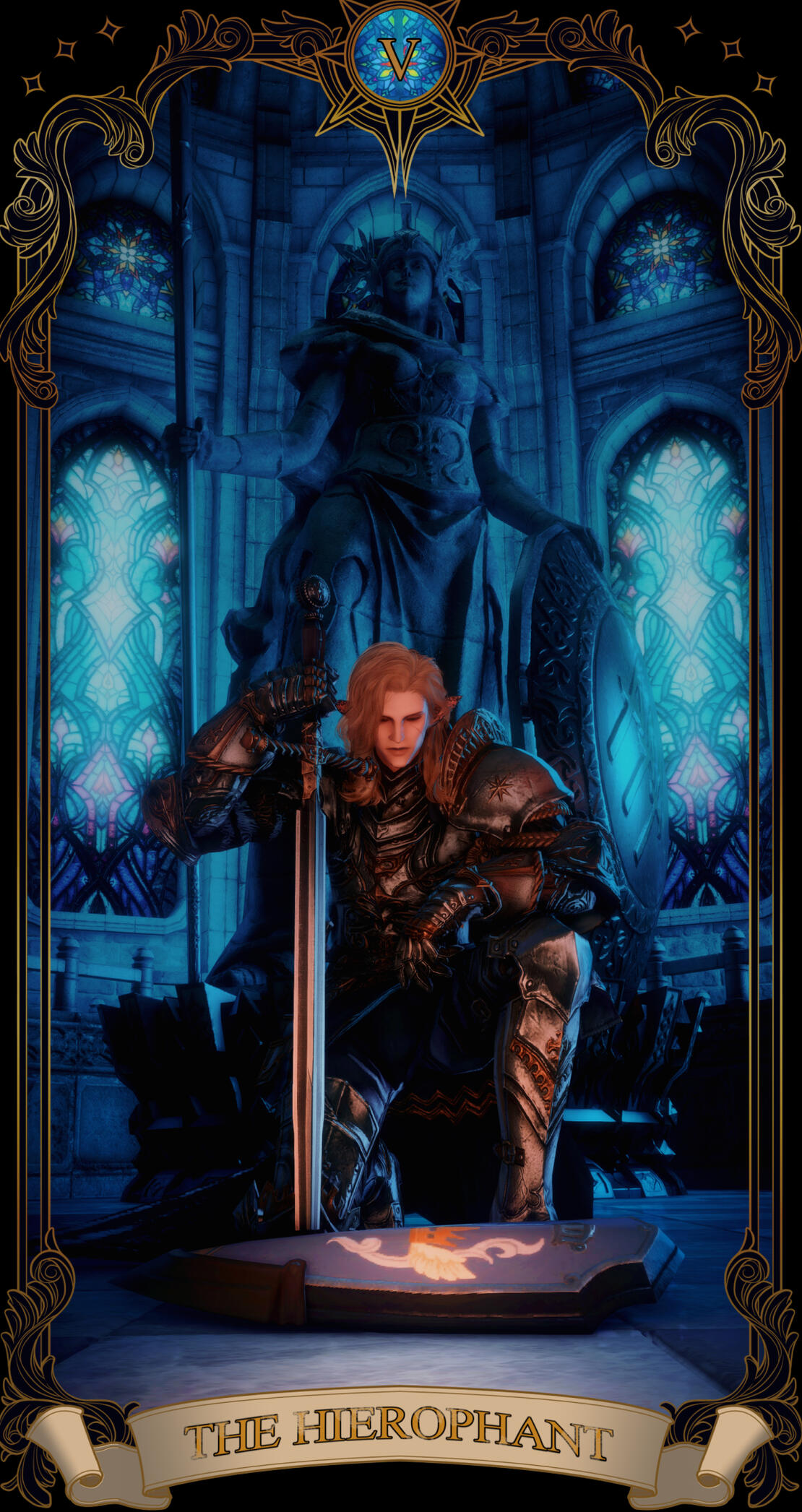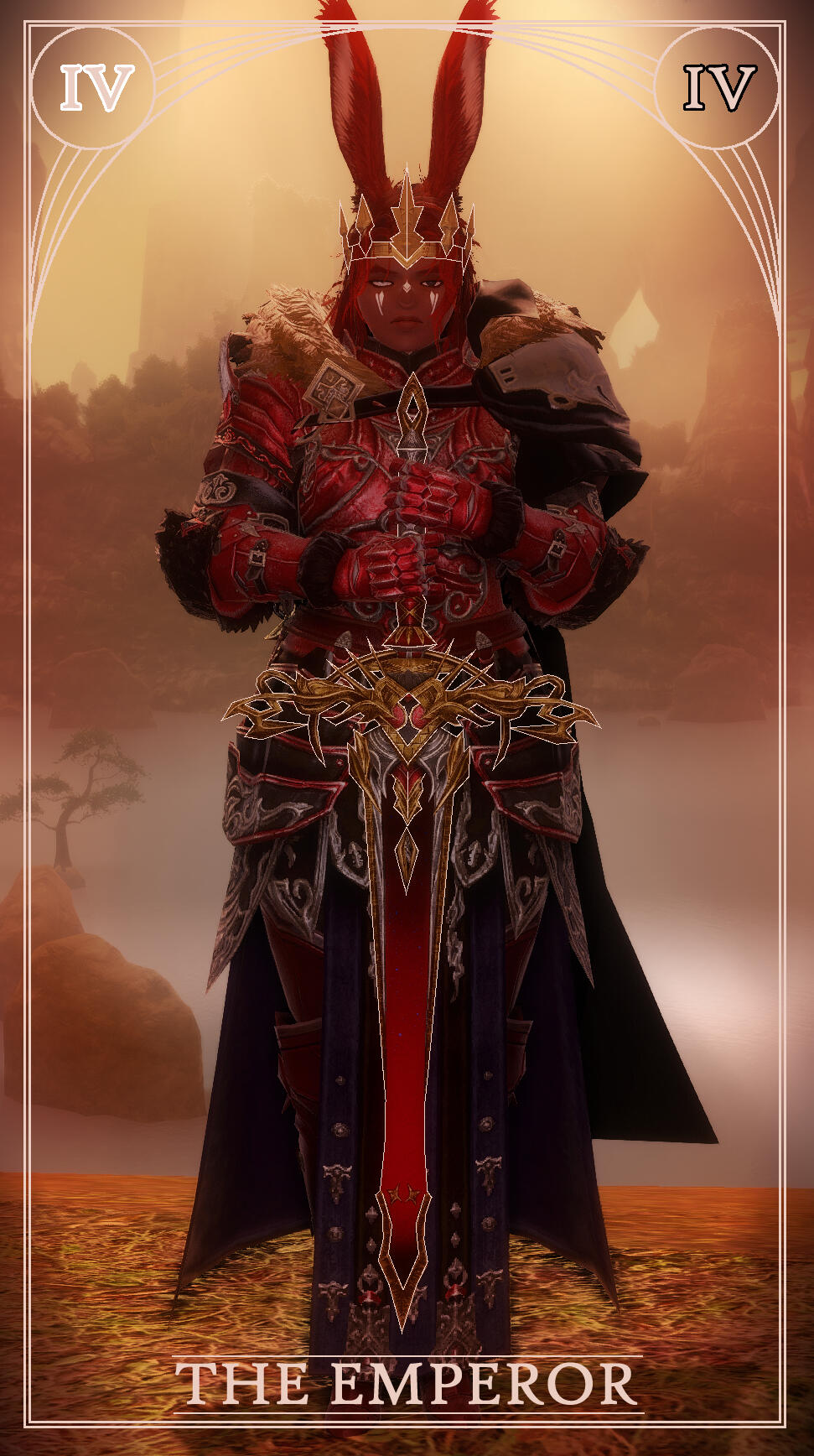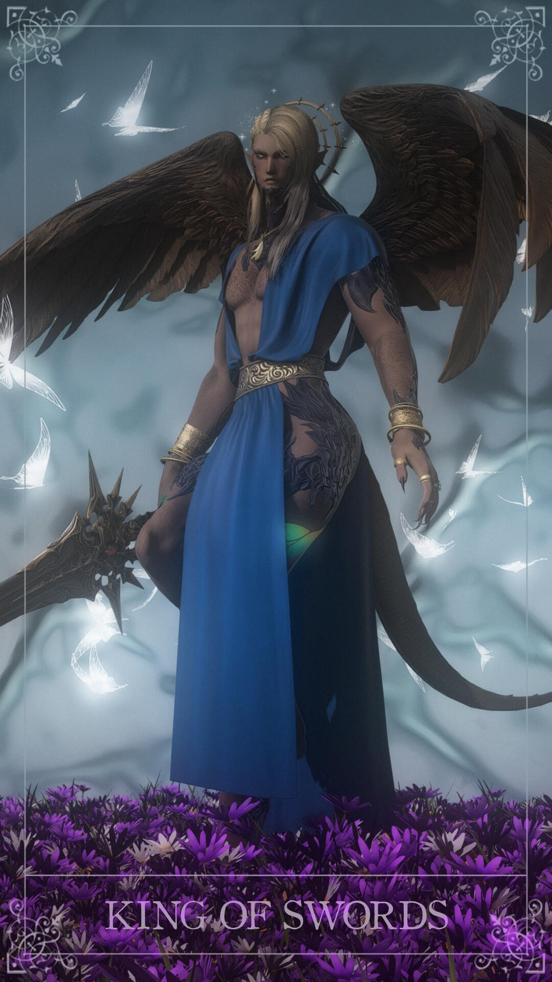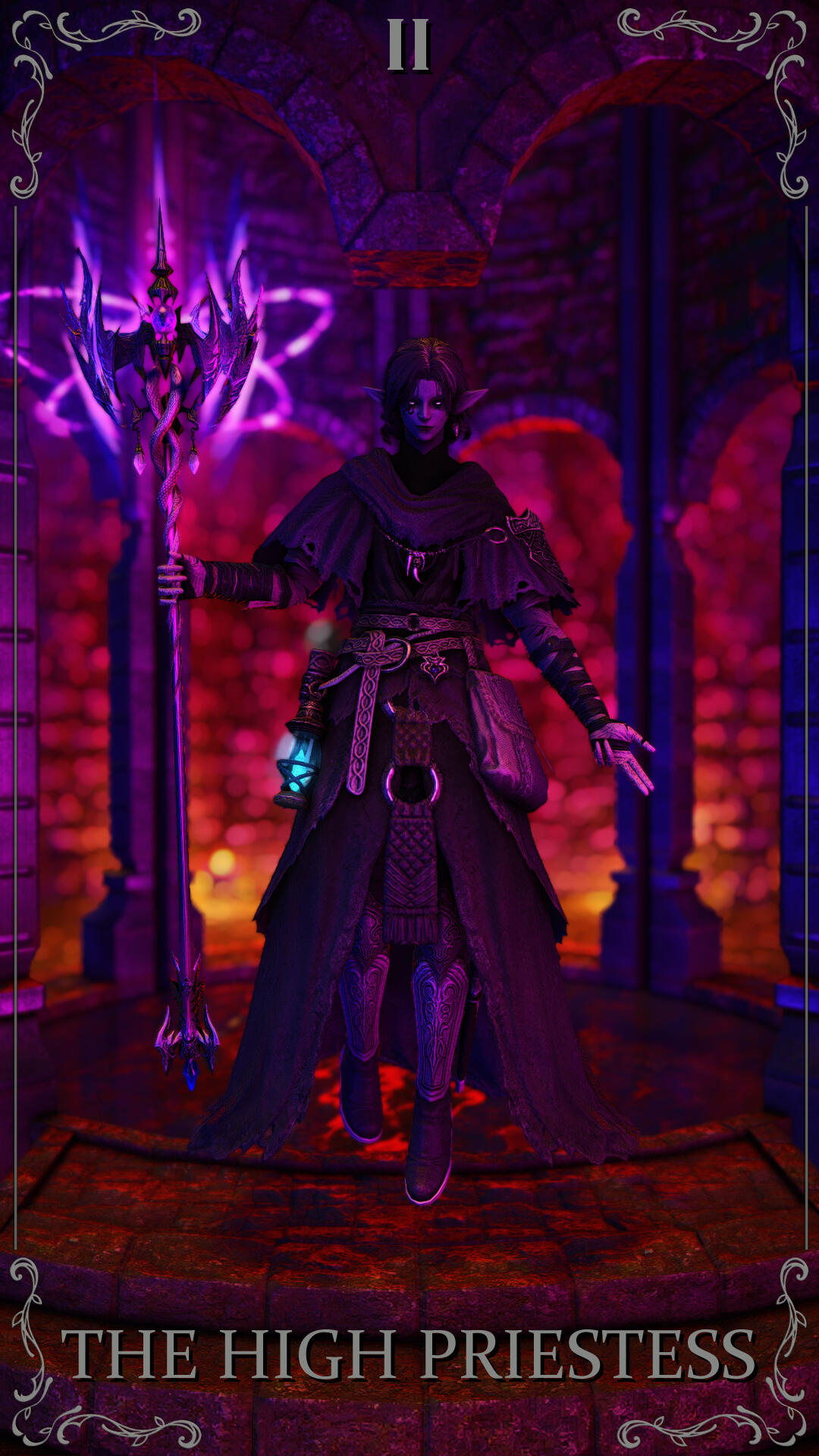 The choice for the card was due to its themes of love and success- as of 6.5- Sappho is happy with a loving girlfriend in Zero and is recovering from Endwalker and all that came before. Her path is looking up, and even reversed has good fortune, and the card also represents femininity, and Sappho is Hyper-Feminine so that matched well.As for the card itself, the elpis blooms and planet behind her representing her triumph over all that was ENW and before. She holds her red mage weapon proudly, and with the focus attached to make a staff as reference to the posing of a lot of other Empress tarot cards. She also has the azem symbol behind her head- its supposed to mimic the holy halos in older christian art while also being related to fourteen and her as a shard of Azem. But the underlying reason to all of this was I just thought it looked really cool.