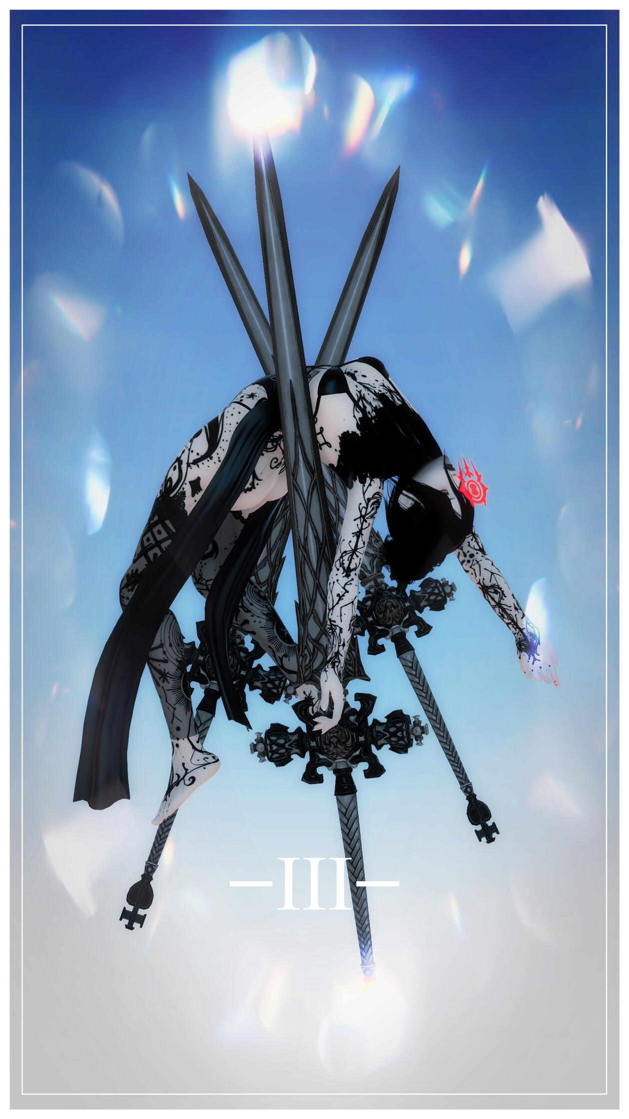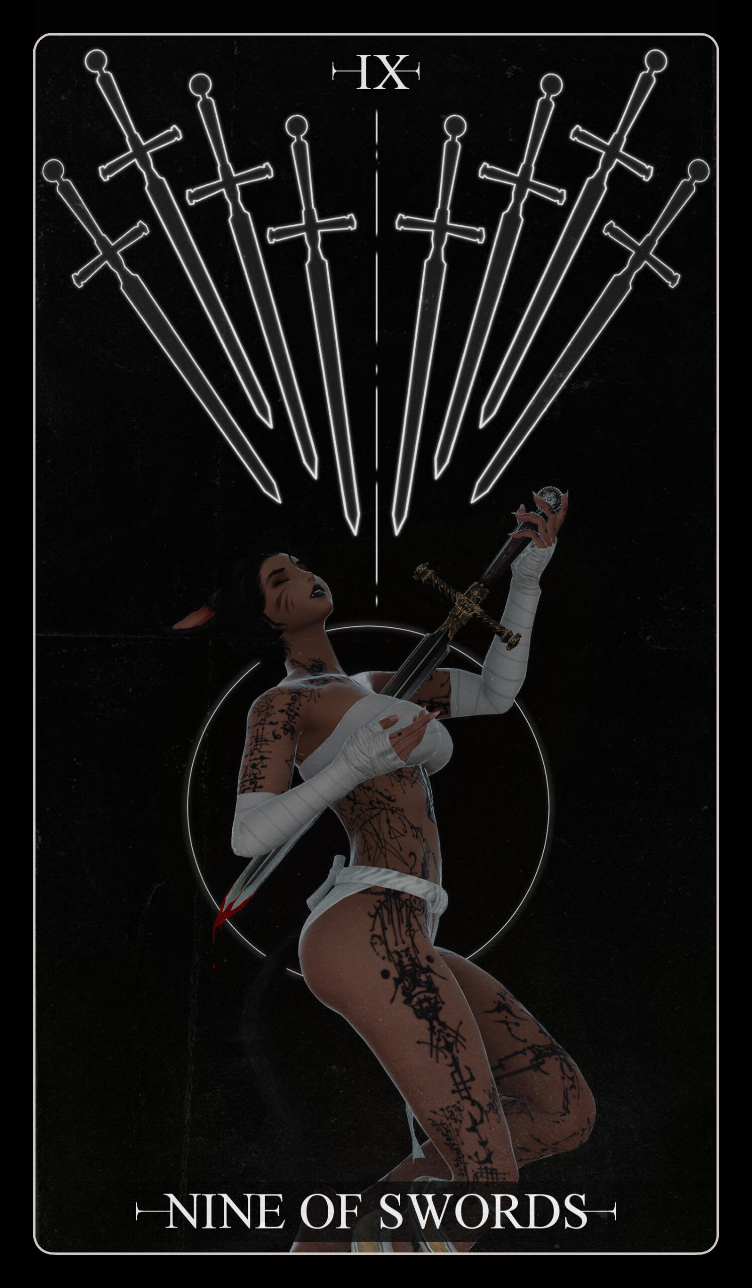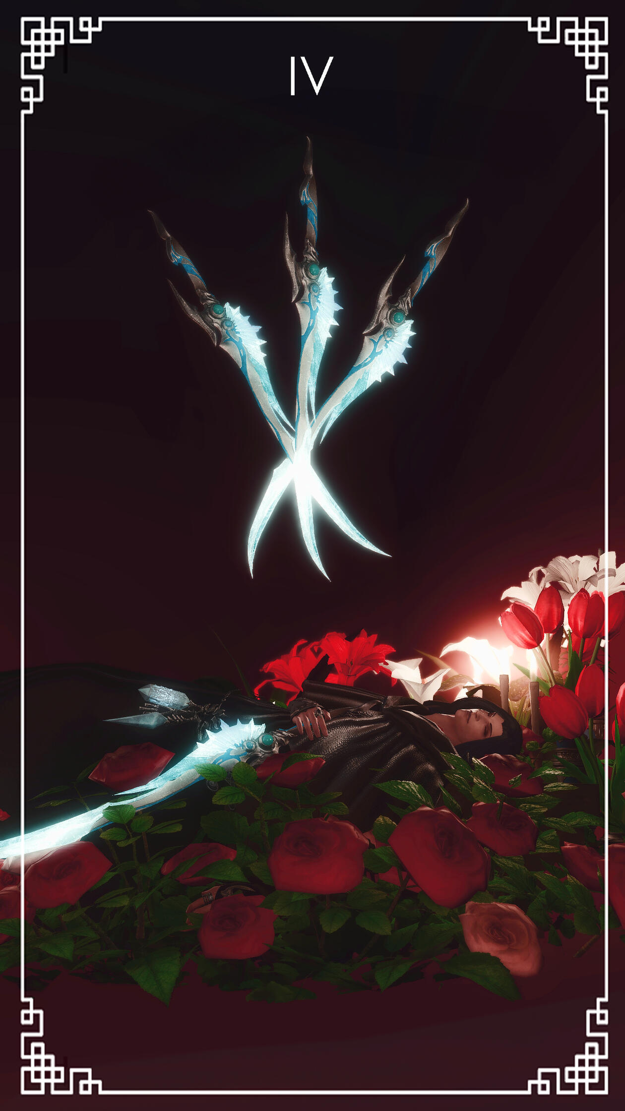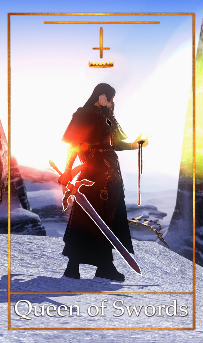 In all honesty, I drew the Kight of Swords from my own deck, and it made sense for my current lore for my OC.As for making the gpose, I kept to what I know and am familiar with, and the props used have been my favorites these past couple months.