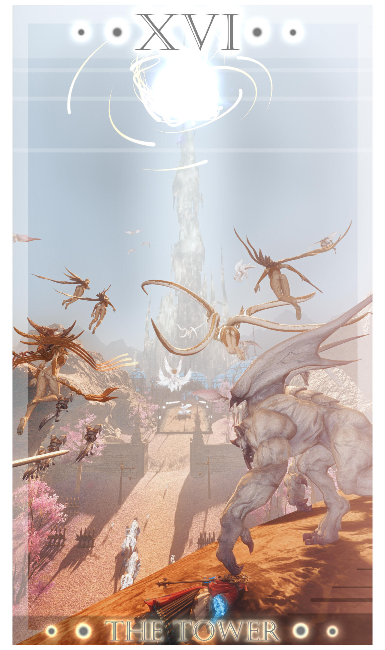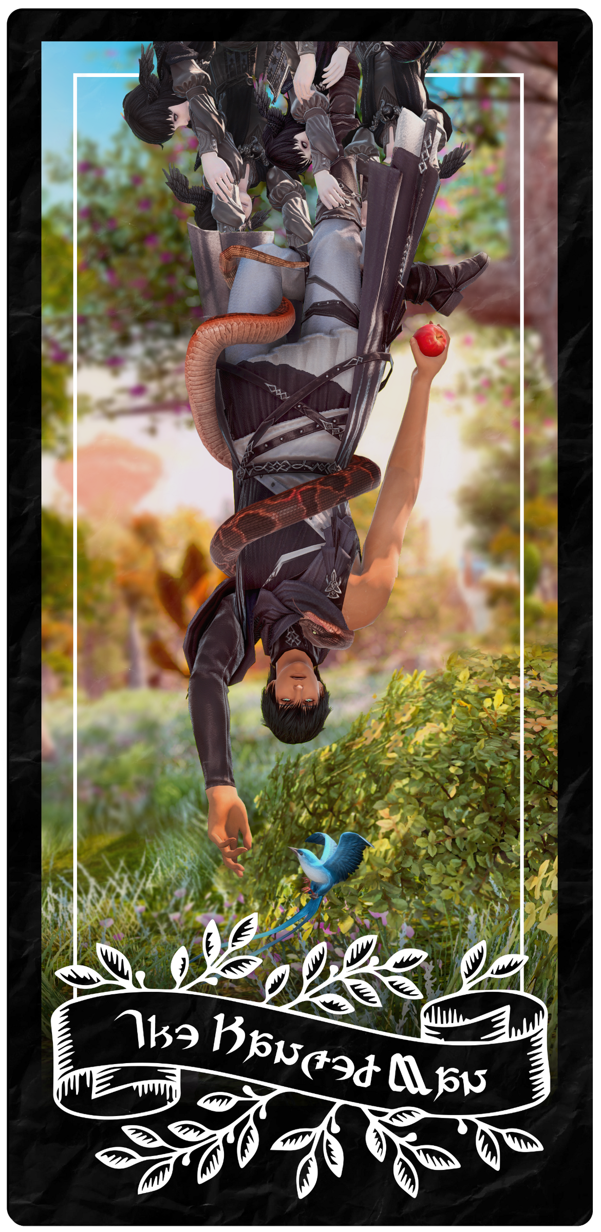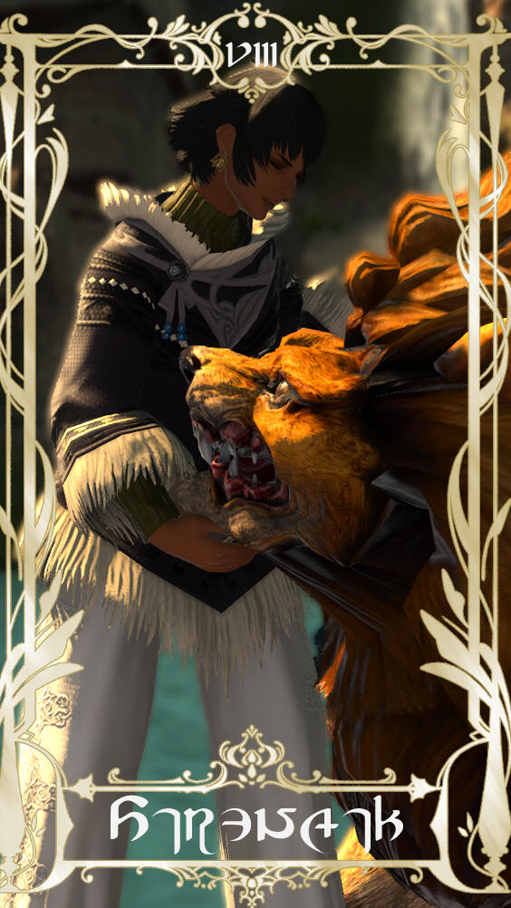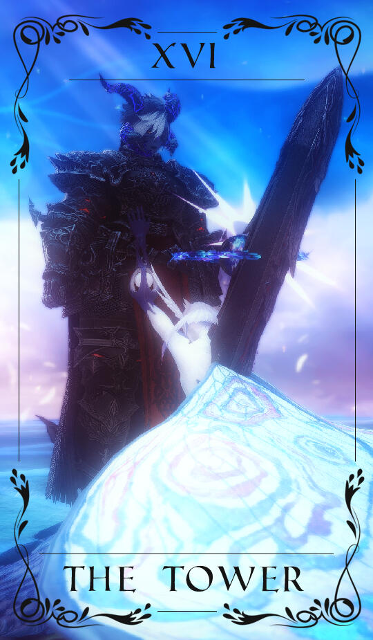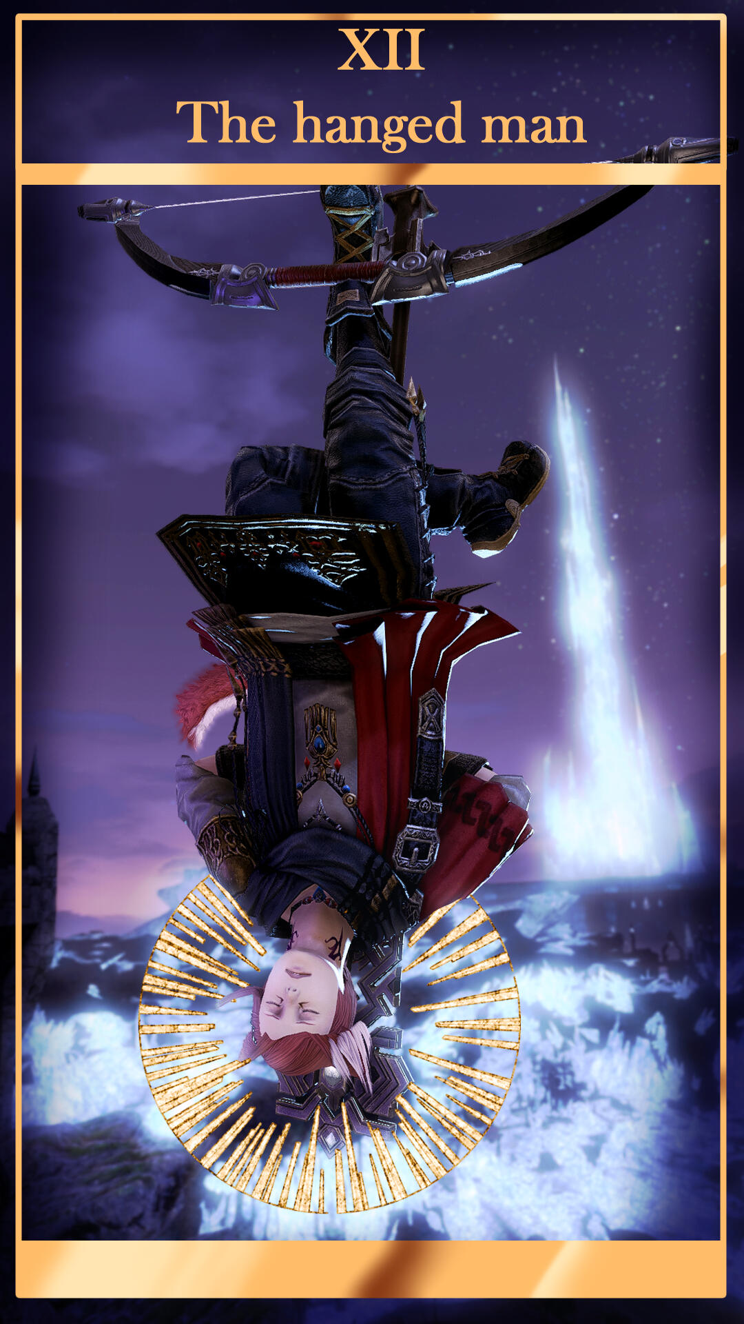 Funnily enough, I had actually taken this picture just a few hours before seeing anything about community tarot cards, and yet by chance I think it aligned really well with Strength! My lightwarden Kairos (previously my wol J'darzi - any pronouns) is in the form of a giant lion chimera, sprouting from the maw of a Forgiven Reticence. In both cards, you see a woman (Minfilia, in this case) cloaked in white holding the chin of the lion. She is in complete gentle control, despite the fierce visage the creature wears. While the lion is a symbol of courage, it is also a symbol of the destructive nature of untampered bravery that can lead to self destruction. As this lightwarden J'darzi at the lowest point she could possibly be in any timeline, it felt fitting. His downfall would be his unstoppable nature - a body that could not keep up with spirit, which would succumb to the light. A eternal punishment for her hubris. Yippee!!