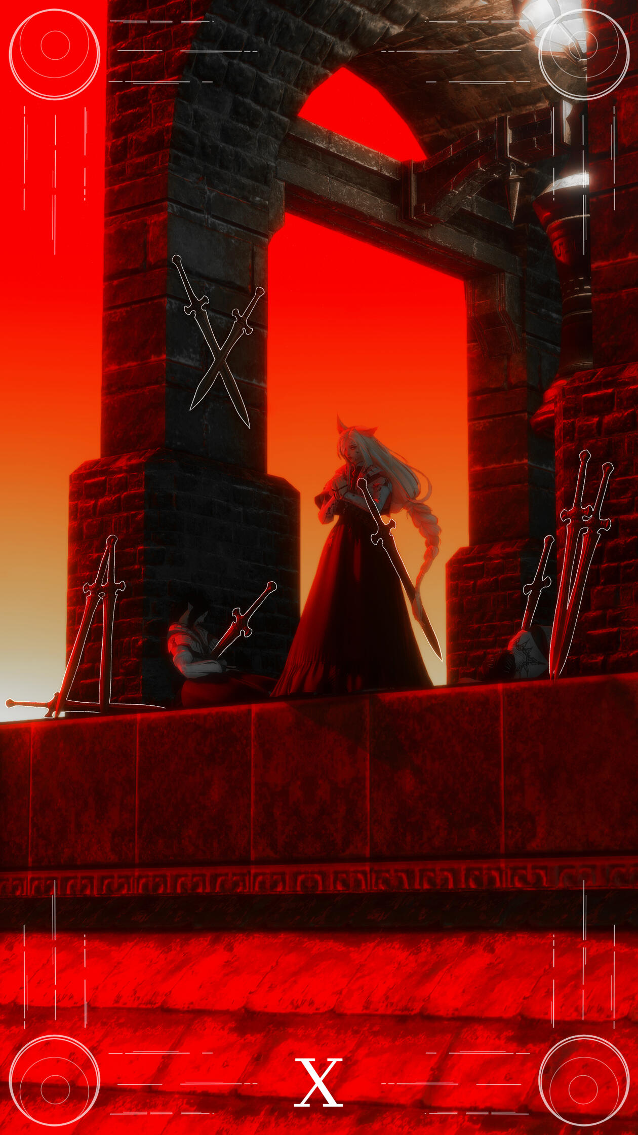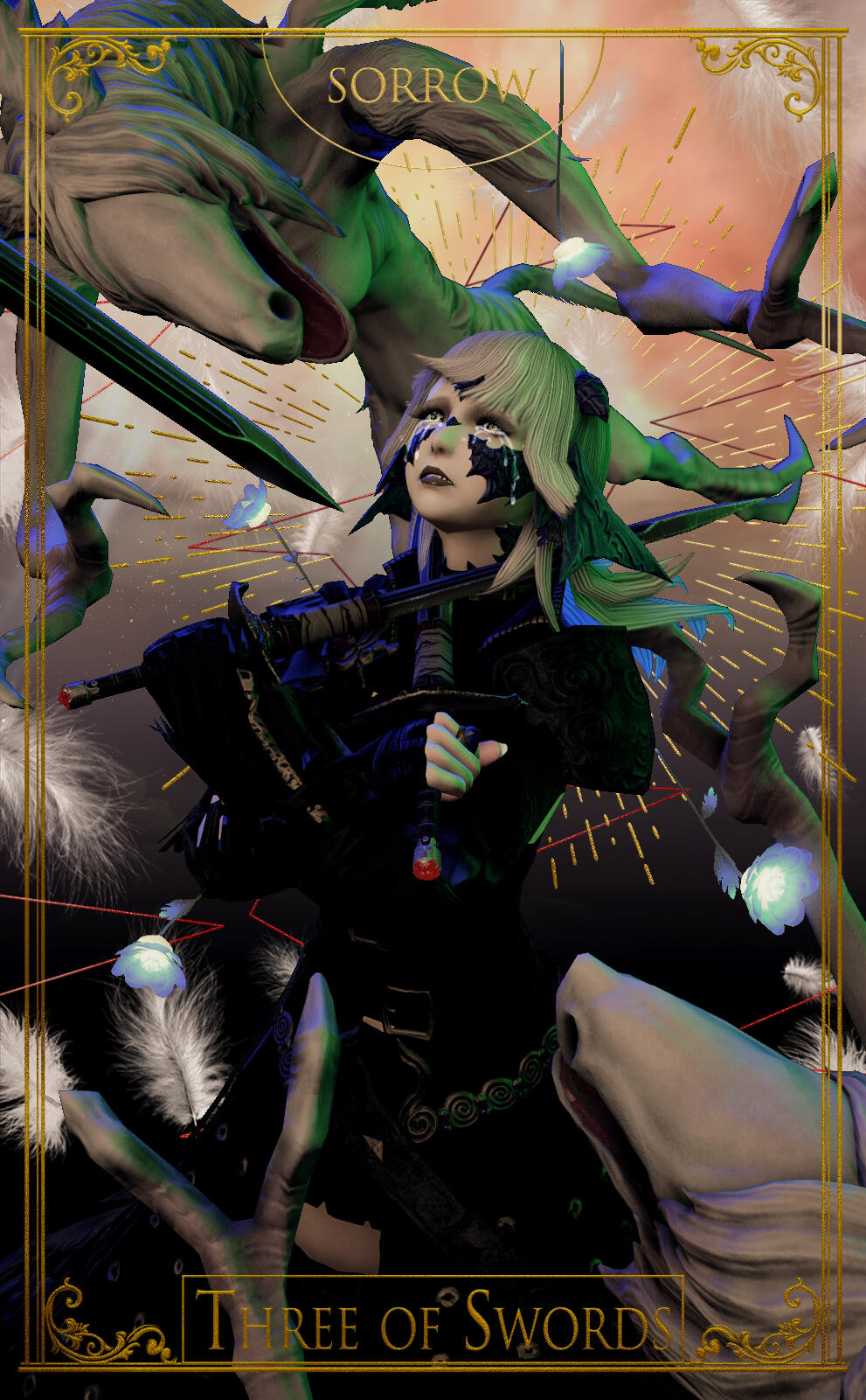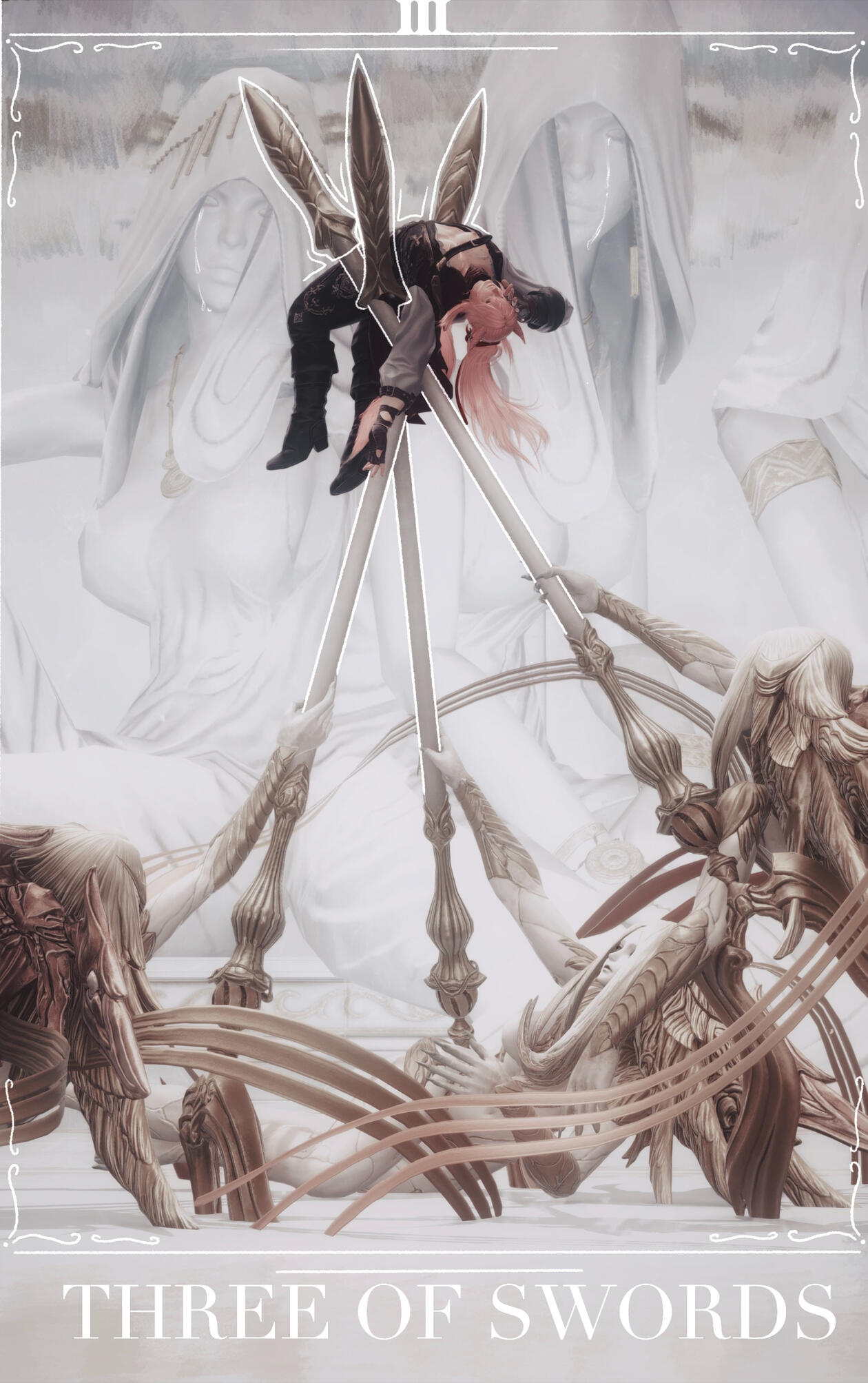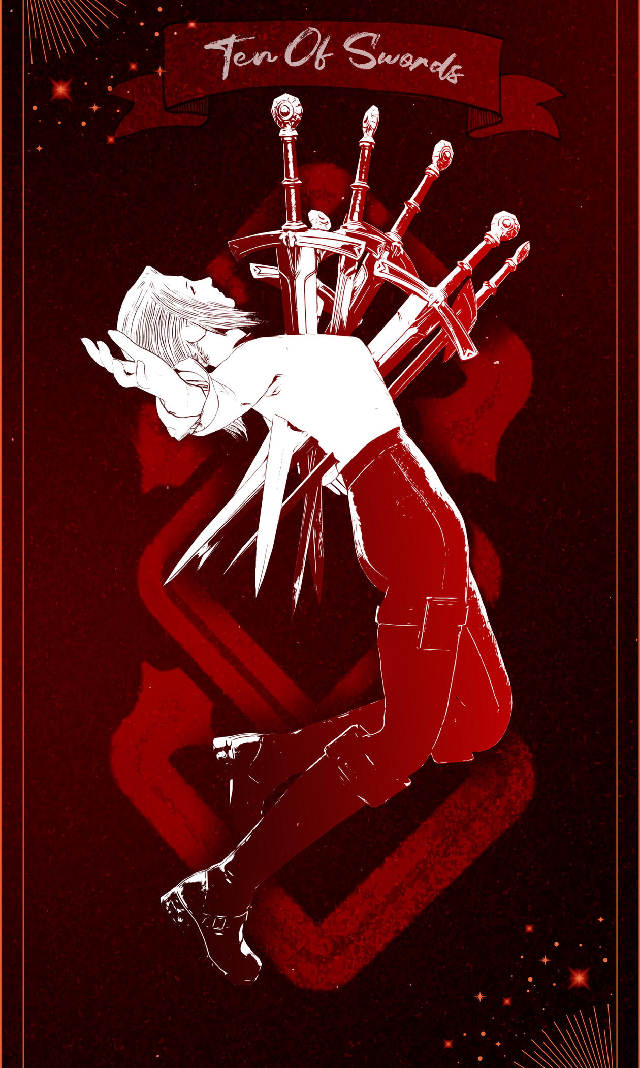 Mainly related to the nature of the card itself; the following.'The Ten of Swords indicate a major disaster of some sort. It shows that a certain force of extreme magnitude has come to hit you in your life - one that you may have not foreseen. There is a sense of betrayal that is indicated here, for the character is stabbed in the back.'Character is Garlean so I thought it fit.
