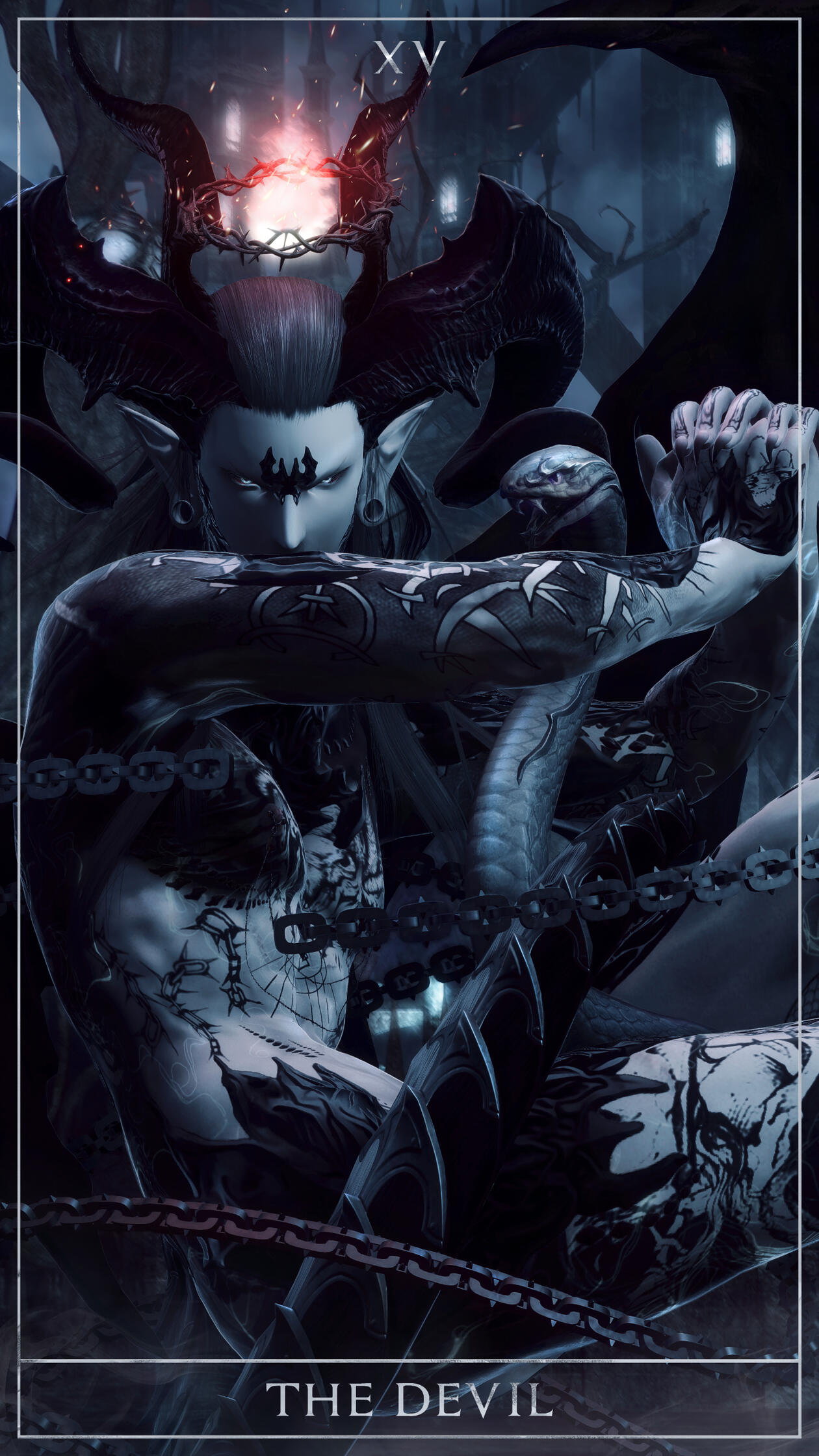 Adon is a vessel for his cruel and tumultuous voidsent. The man himself is disciplined, just and believes in justice.Aeshma, on the other hand, is manipulative, cruel, and bears little love. I wanted this to be a card that allowed for both upright and reverse options, portraying the two in a constant conflict between each other.