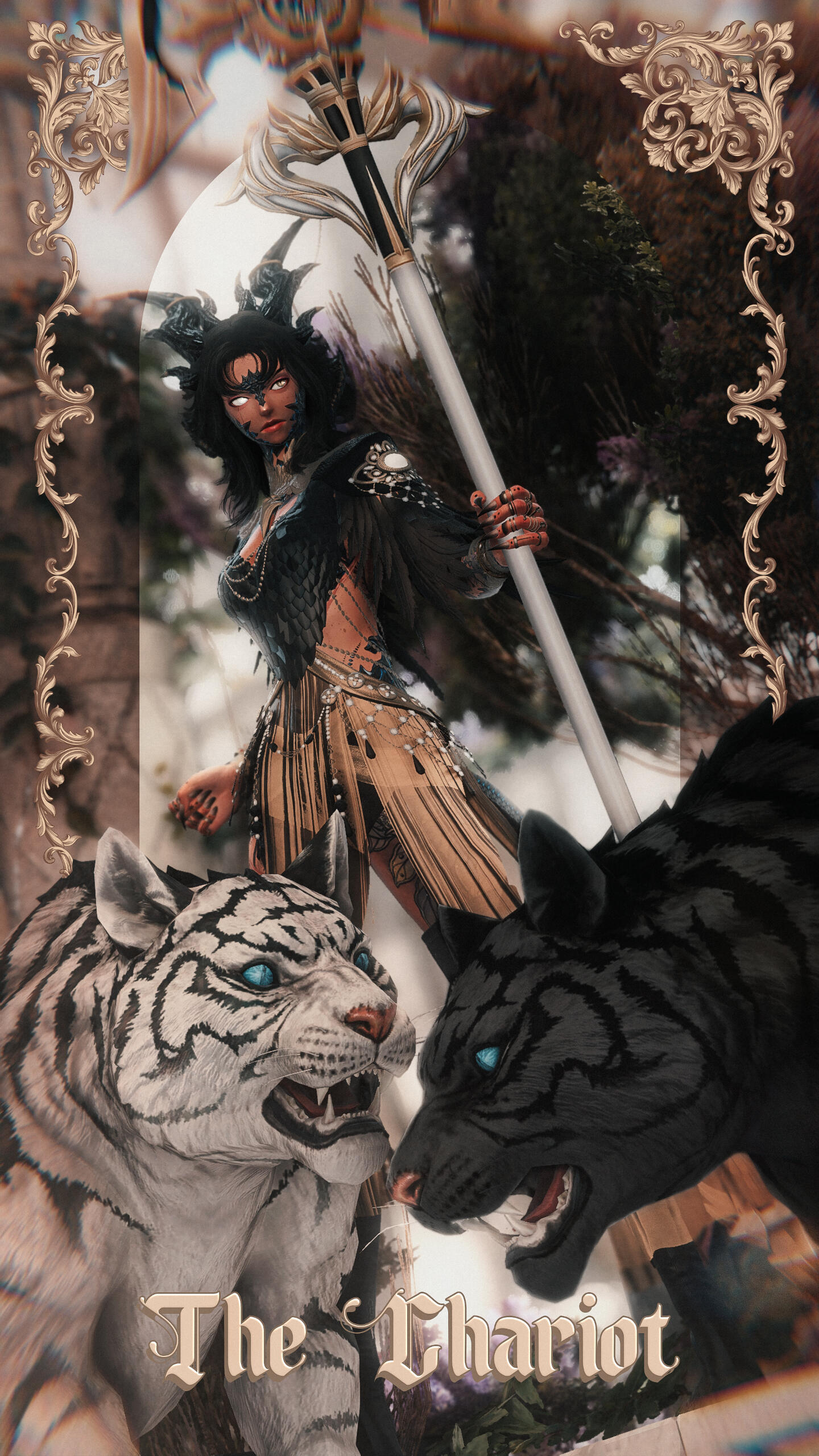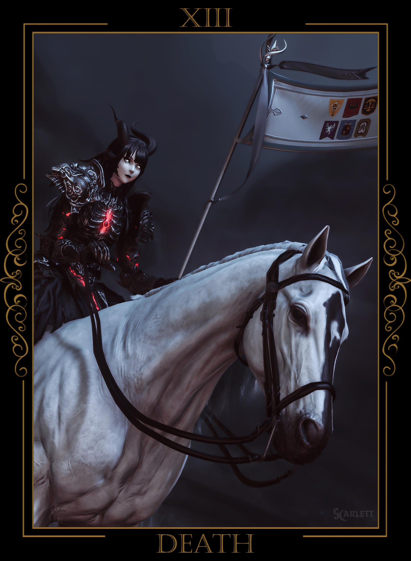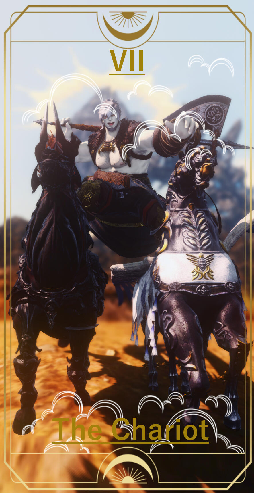 Sthal's been through the wringer in so many ways, but he never stops pushing forward. The Chariot was an obvious pick for him, with it's meanings of Self-assurance, Victory, and Self-confidence.As for the shot itself, the Chariot is often portrayed as a king leading a chariot made up of two differently colored horses. With that idea as a jumping off point (and throwing Sleipnir in as that's his canon mount) all that was left was to find a spot and get to work :D