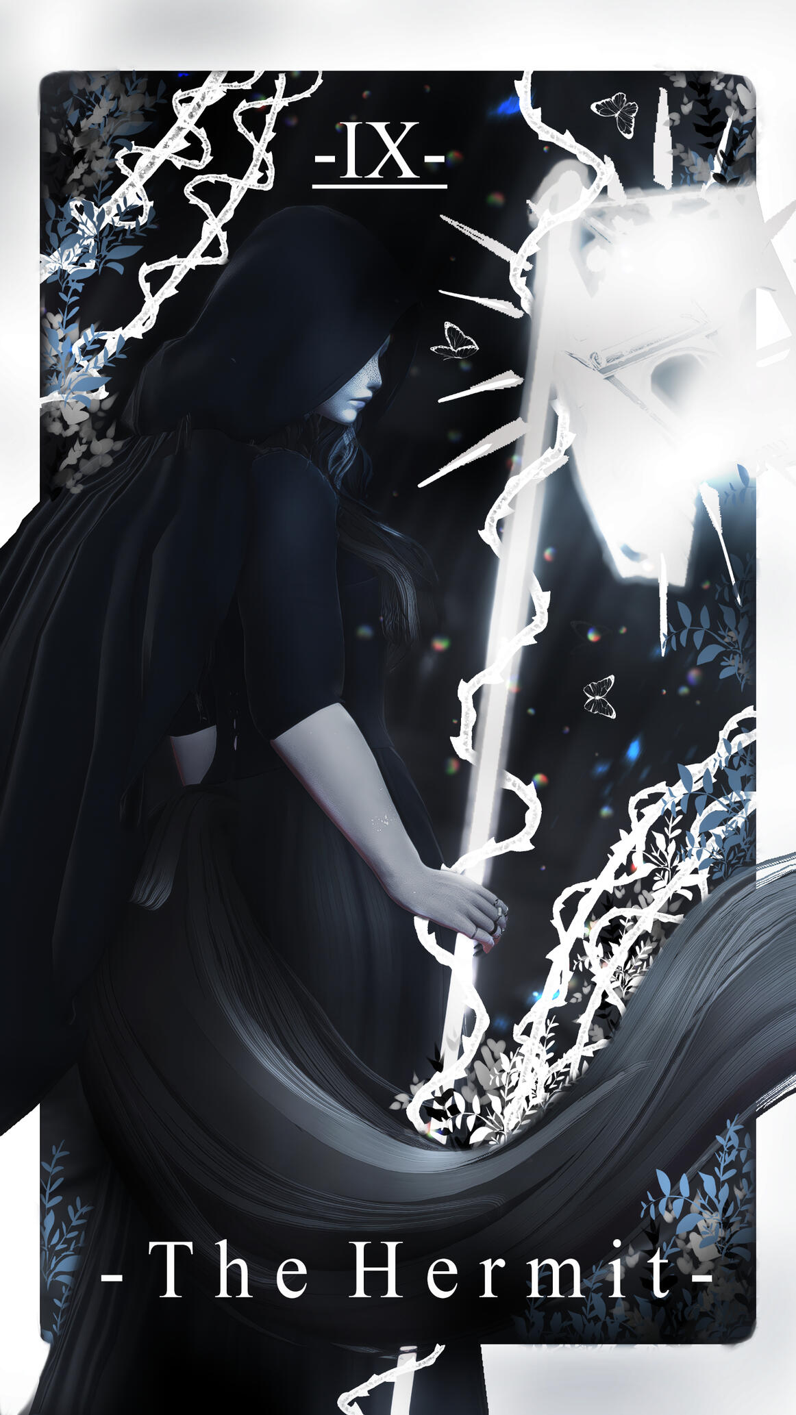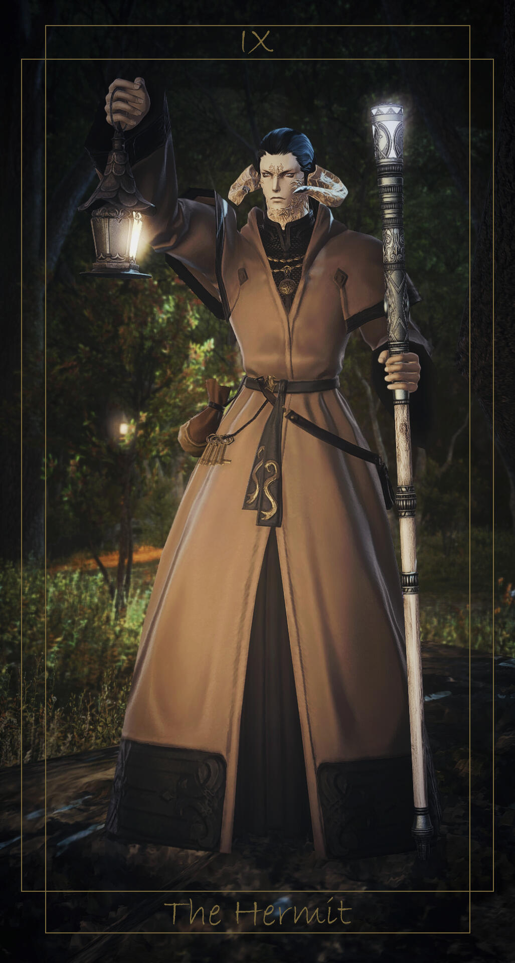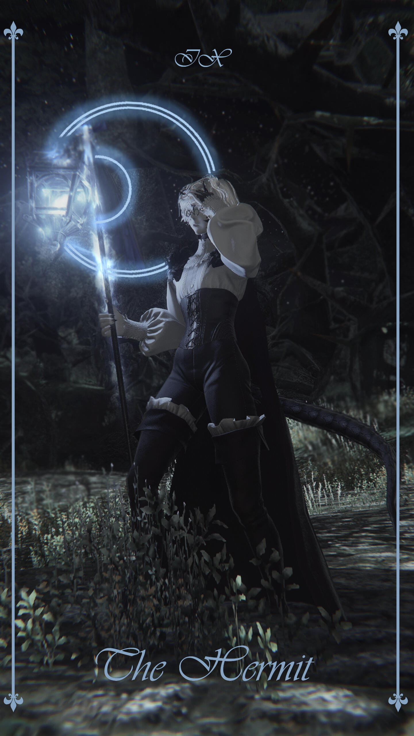 “A lonely wanderer, seeking to learn what could be gained from solitude. Someone led astray after so many losses, disconnecting from the world’s noises to hear their inner voice. Walking through dark nights, The Hermit is guided by a dim light. Their destination is their home; their own self. Upright Hermit is surrounded by reflection, contemplation and inner guidance. Reversed Hermit deals with fear, anxiety, isolation and the dangers of the path they chose.”A rolling stone gathers no moss, that’s what Minamoto no Rin thinks. After leaving Doma, the young auri woman got used to walking and traveling. Often, to work by the side of the scions. Sometimes, to seclude herself and learn from inner quiet. Just like her former teacher, Gosetsu, that became a wandering monk. Rin’s samurai’s sword is her guiding light, the lantern to her Hermit.