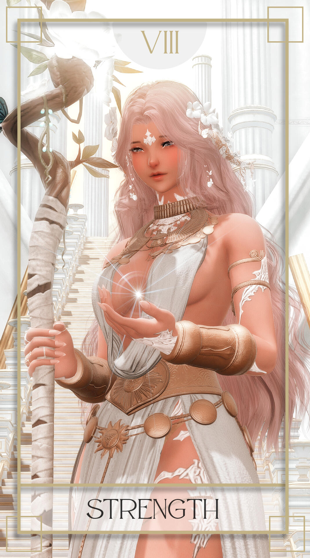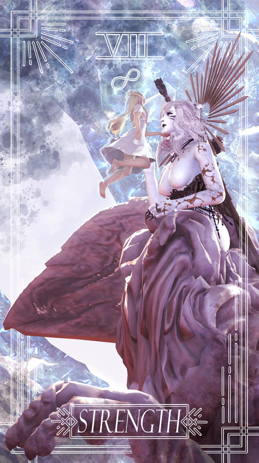 On strength I tried to recreate each element on one of the really old tarrot card art styles, every detail is there just in final fantasy :)