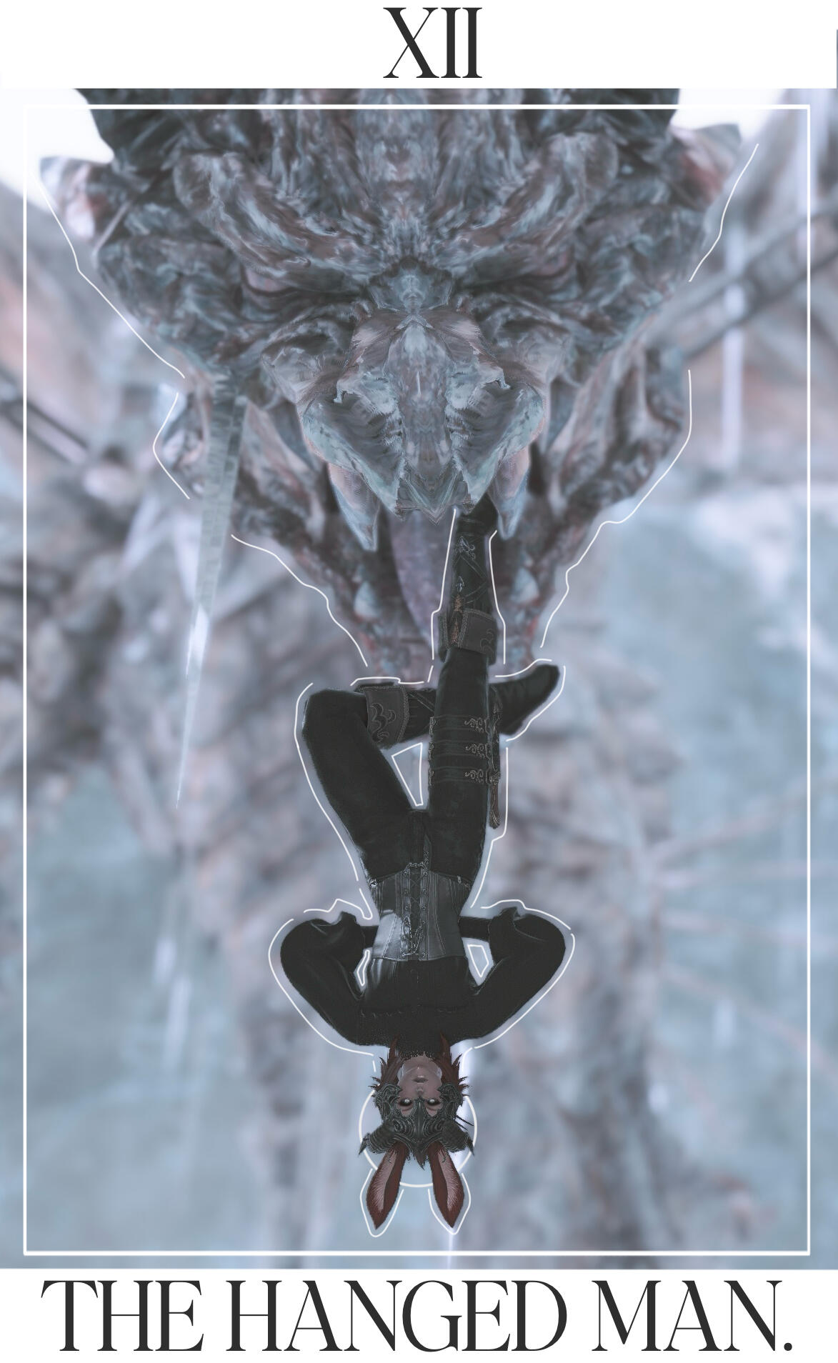Funnily enough, I had actually taken this picture just a few hours before seeing anything about community tarot cards, and yet by chance I think it aligned really well with Strength! My lightwarden Kairos (previously my wol J'darzi - any pronouns) is in the form of a giant lion chimera, sprouting from the maw of a Forgiven Reticence. In both cards, you see a woman (Minfilia, in this case) cloaked in white holding the chin of the lion. She is in complete gentle control, despite the fierce visage the creature wears. While the lion is a symbol of courage, it is also a symbol of the destructive nature of untampered bravery that can lead to self destruction. As this lightwarden J'darzi at the lowest point she could possibly be in any timeline, it felt fitting. His downfall would be his unstoppable nature - a body that could not keep up with spirit, which would succumb to the light. A eternal punishment for her hubris. Yippee!!