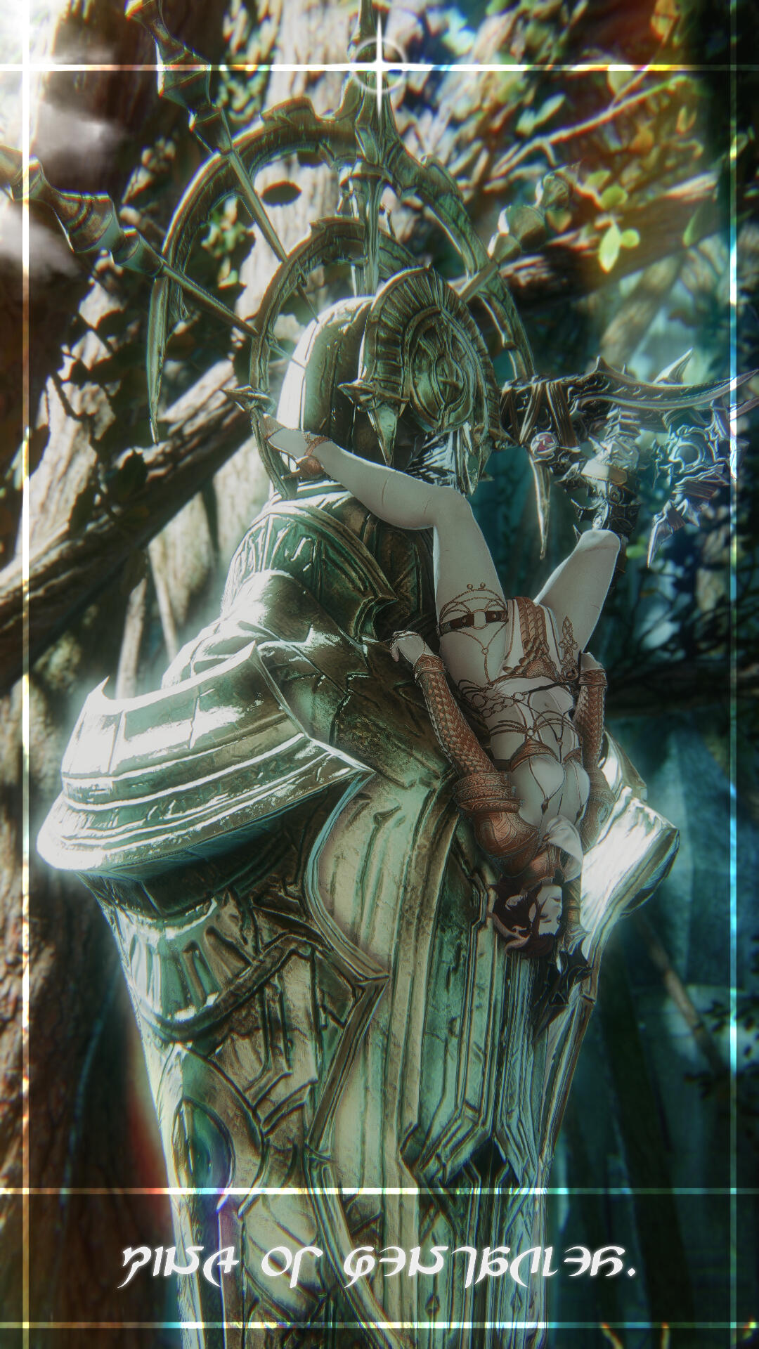 Four hands our fortunes mend, that want we may not knowThe original Four of Pentacles card features a king amidst a city backdrop holding onto a large coin. I wanted to recreate that using the final area in Aglaia where you fight Nald'thal, both as a visual parallel and as a nod to the lore of the Traders being seen as twin gods of mercantile affairs and death. Arcade (the character being featured) is dressed lavishly in finery befitting a ruler, as he sits on a throne of avarice holding a wine goblet. Behind him are two lions, signifying protection from any would-be thieves of his wealth. As Nald'thal is his patron, I wanted to utilize elements showing off a love for money and a warm desert theme.