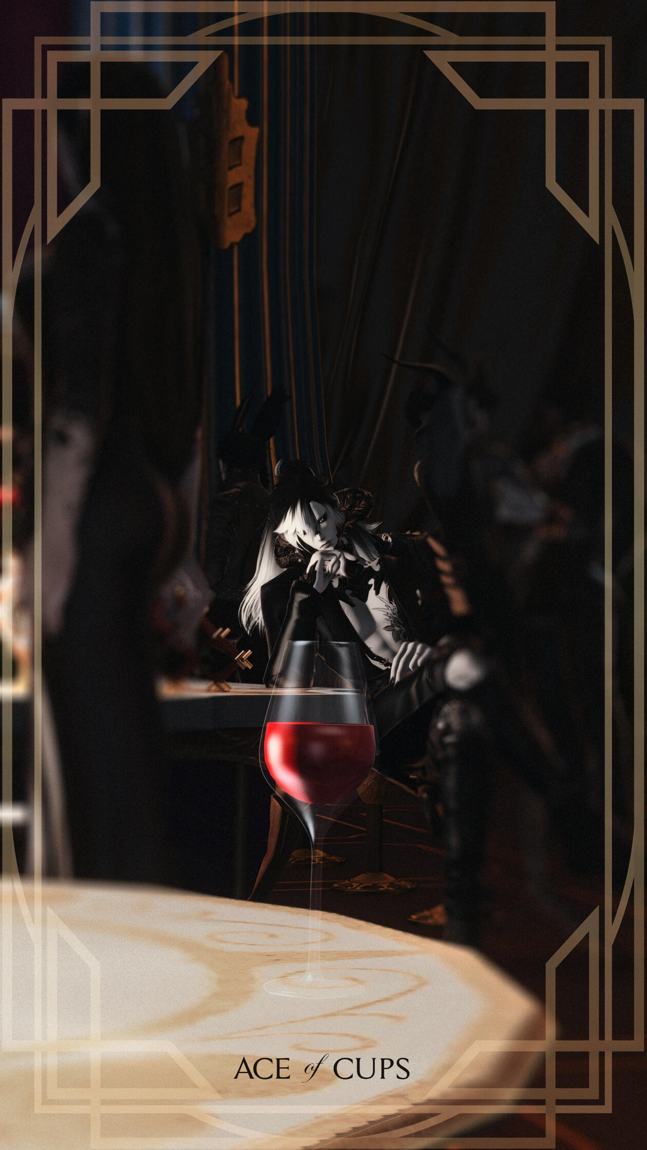 The choice for the card was due to its themes of love and success- as of 6.5- Sappho is happy with a loving girlfriend in Zero and is recovering from Endwalker and all that came before. Her path is looking up, and even reversed has good fortune, and the card also represents femininity, and Sappho is Hyper-Feminine so that matched well.As for the card itself, the elpis blooms and planet behind her representing her triumph over all that was ENW and before. She holds her red mage weapon proudly, and with the focus attached to make a staff as reference to the posing of a lot of other Empress tarot cards. She also has the azem symbol behind her head- its supposed to mimic the holy halos in older christian art while also being related to fourteen and her as a shard of Azem. But the underlying reason to all of this was I just thought it looked really cool.